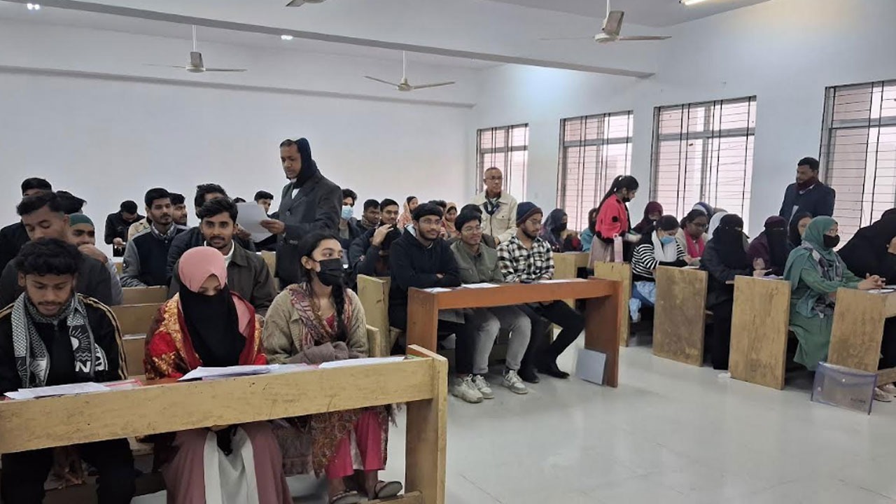 চট্টগ্রাম বিশ্ববিদ্যালয়ের (চবি) ২০২৫-২৬ শিক্ষাবর্ষের প্রথম বর্ষের স্নাতক (সম্মান) সমাজবিজ্ঞান অনুষদভুক্ত ডি ইউনিটের ভর্তি পরীক্ষায় এক বেঞ্চে বসে তিন ভর্তিচ্ছু শিক্ষার্থীকে পরীক্ষা দিতে দেখা গেছে।