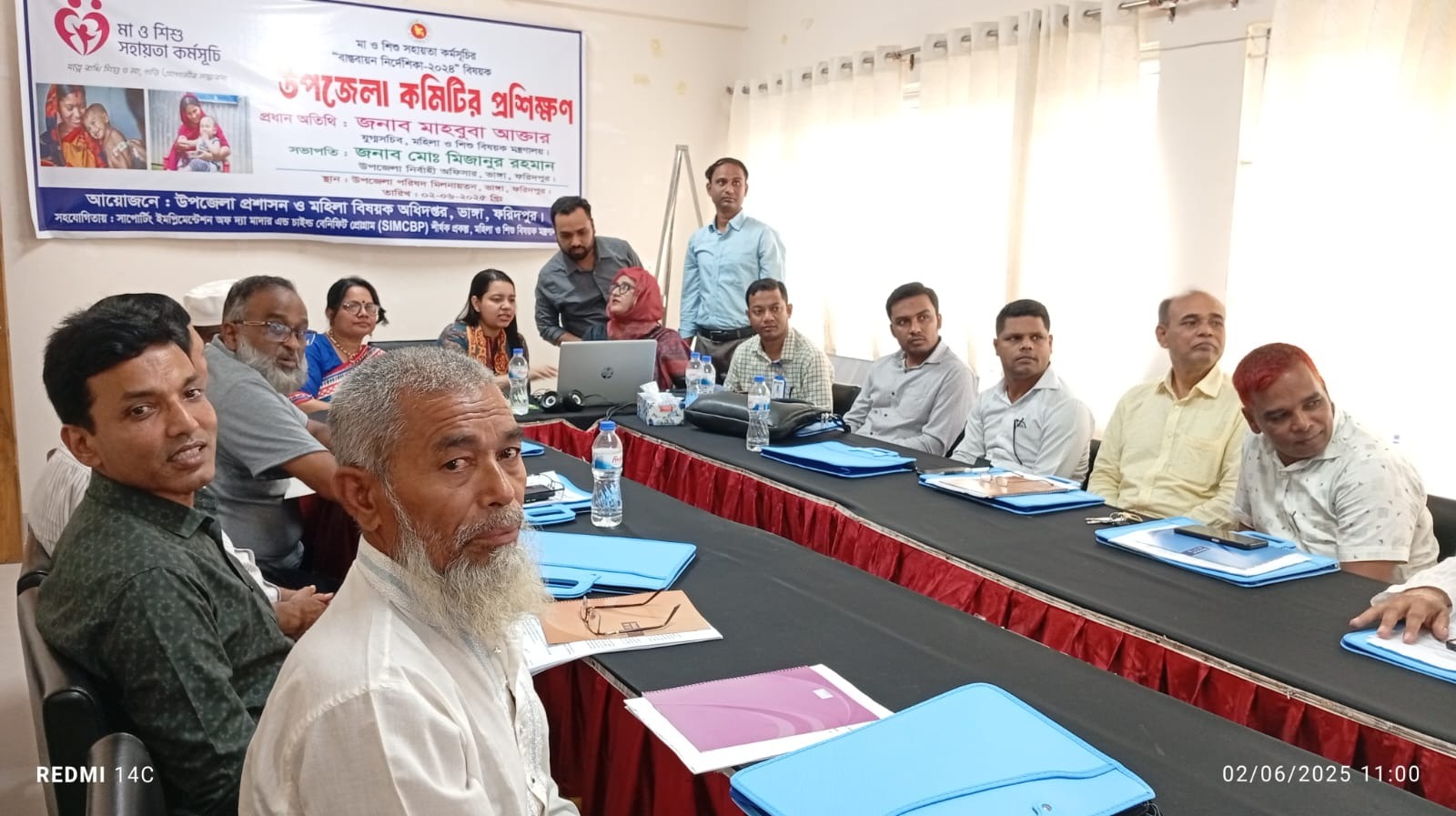 এসআইএমসিবিপি শীর্ষক প্রকল্প মহিলা ও শিশু বিষয়ক মন্ত্রণালয় এর সহযোগিতায় উপজেলা প্রশাসন ও মহিলা বিষয়ক অধিদপ্তর এর আয়োজনে মা ও শিশু সহায়তা কর্মসূচির বাস্তবায়ন নির্দেশিকায় ফরিদপুর জেলার ভাঙ্গা উপজেলা কমিটির প্রশিক্ষণ সোমবার সকালে উপজেলা পরিষদ মিলনায়তনে অনুষ্ঠিত হয়।
