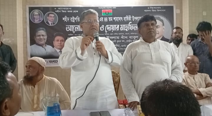 আলোচনা সভার সভাপতিত্ব করেন বিএনপির সভাপতি আলহাজ্ব খন্দকার