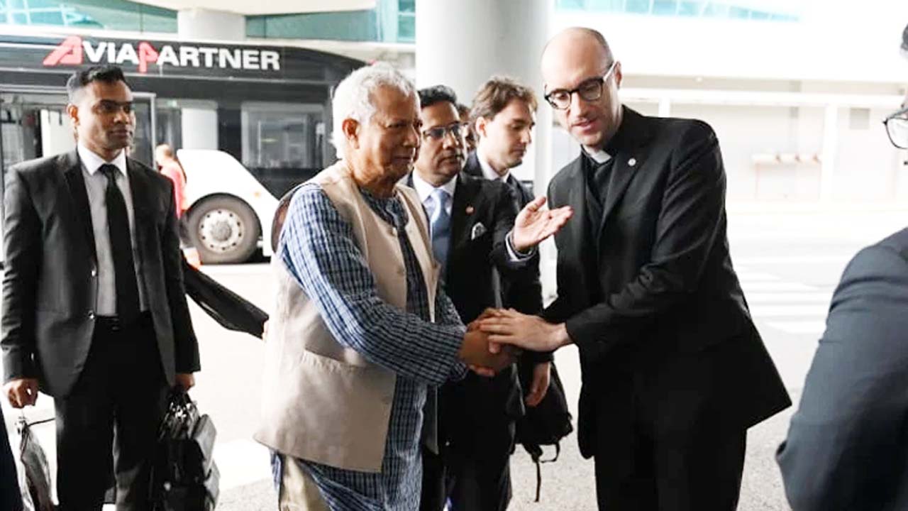 ইতালিতে নিযুক্ত বাংলাদেশের রাষ্ট্রদূত এটিএম রোকেবুল হক রোম ফিউমিসিনো বিমানবন্দরে প্রধান উপদেষ্টাকে অভ্যর্থনা জানান। তার আগে বেলা সাড়ে ১১টায় হযরত শাহজালাল আন্তর্জাতিক বিমানবন্দর থেকে বিমান বাংলাদেশ এয়ারলাইন্সের একটি ফ্লাইটে তিনি রওনা দেন।