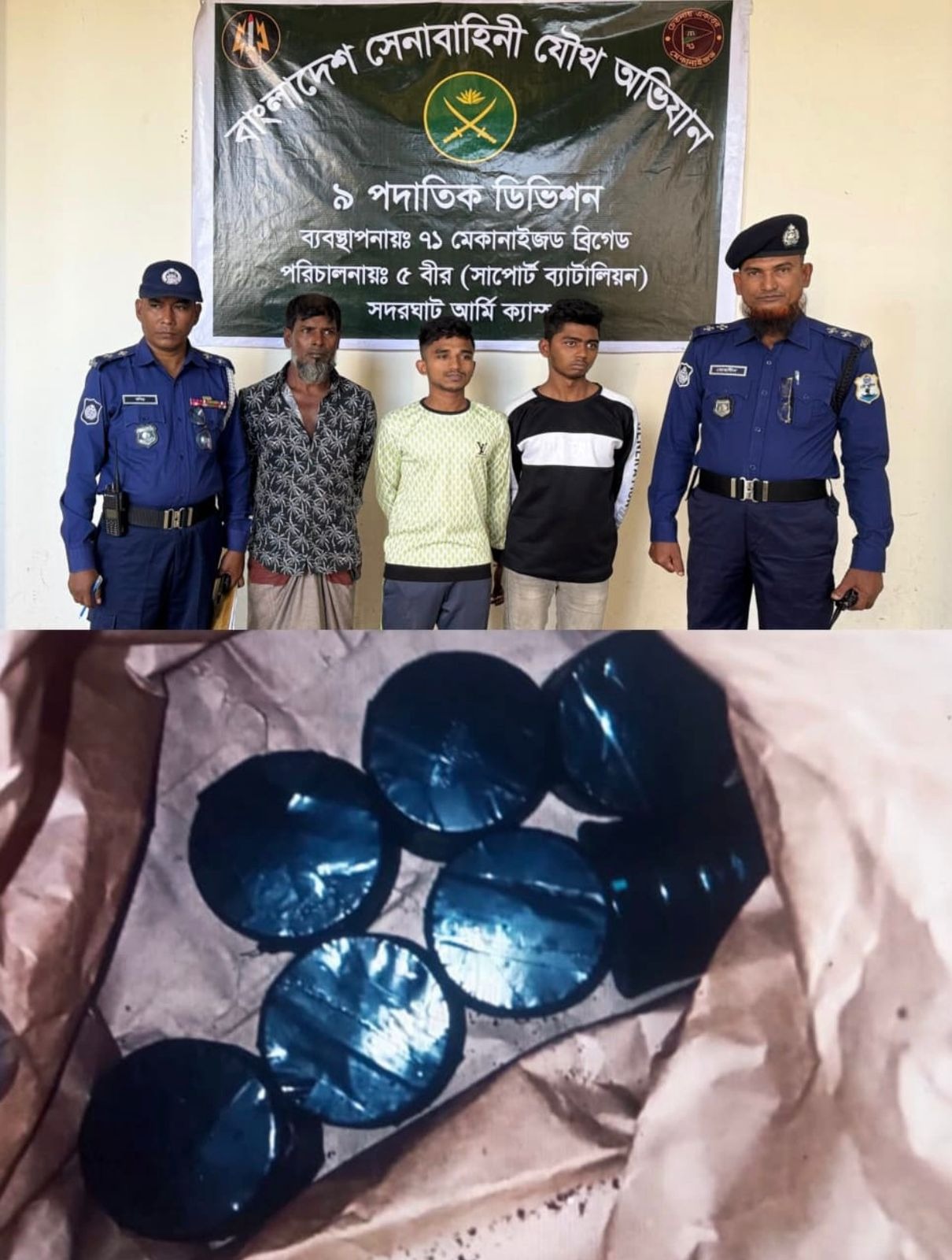 অভিযানকালে সন্দেহজনক গতিবিধির কারণে প্রথমে মো. জিহাদ (১৯)-কে আটক করা হয়। পরে তার দেয়া তথ্যের ভিত্তিতে আরও দুইজন— মো. মনির (৫০) ও মো. স্বাধীন (২০)—কে গ্রেফতার করা হয়।