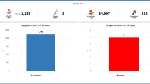 ডেঙ্গুতে আরও ৫ জনের মৃত্যু, হাসপাতালে ভর্তি ১১৩৯